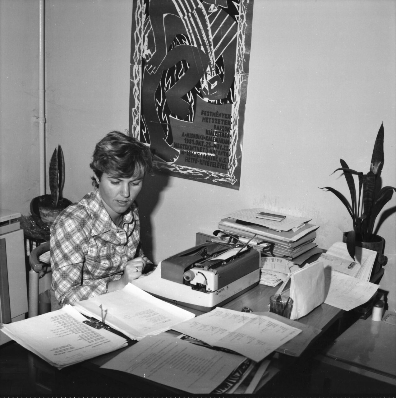 The staff of the Miskolc Gallery. Andrea Györgyné Faragó, art organizer and librarian, around 1980.