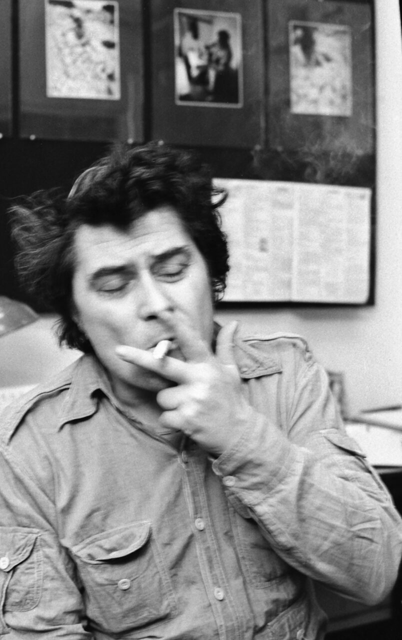 Gyulai Líviusz grafikusművész a József Attila Könyvtár fotólaborjában 1980 októberében.