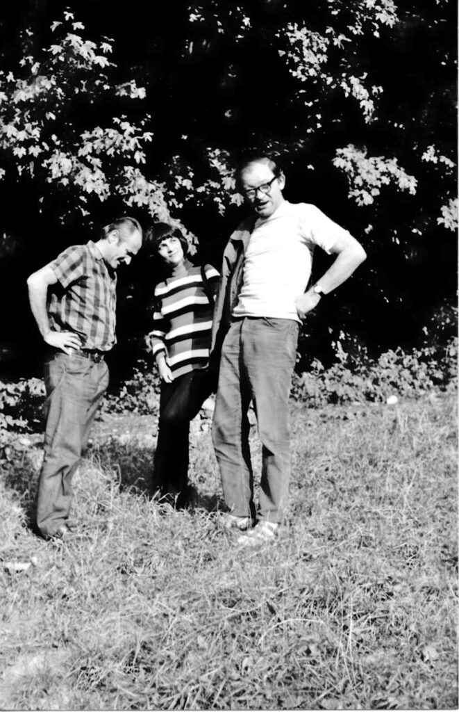 Béla Kondor, Judit Kaponya and the Fedor couple in the Bükk Mountains, around 1970-71. The photograph is presumably from József Fedor; it was one of the negatives that were found around 1975 and restored by Ernő Fejér in the photo lab of the József Attila Library. The story of the photograph was found in a bag containing positive images.