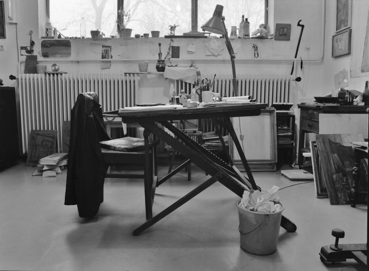The studio of graphic artist Zoltán Lenkey the day after his passing, 16 April 1983.