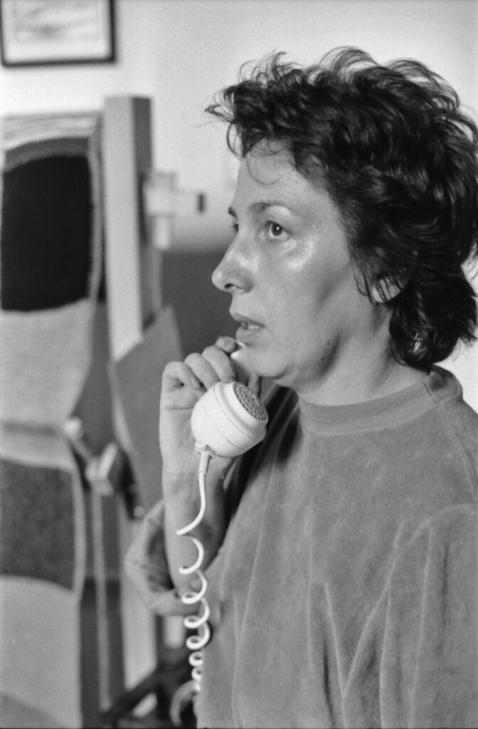 Máger Ágnes festőművész Miskolcon a Derkovits utcai műtermében 1988 májusában