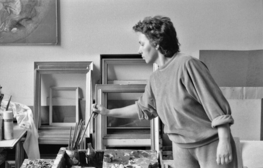 Máger Ágnes festőművész Miskolcon a Derkovits utcai műtermében  1988 májusában