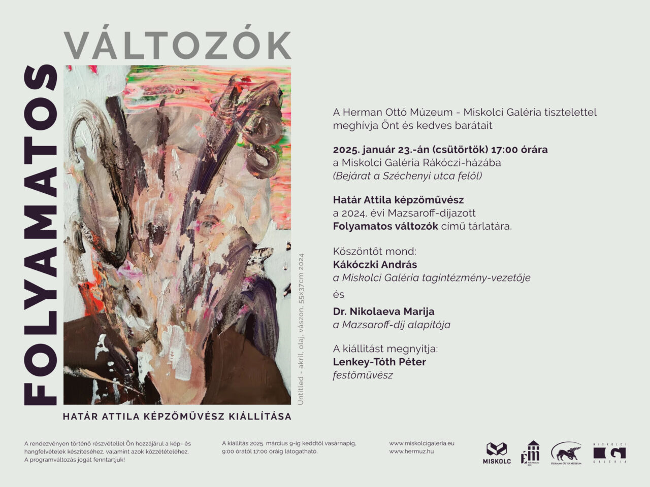 2025. január 23-án, csütörtökön 17.00 órára a Miskolci Galéria Rákóczi-házába